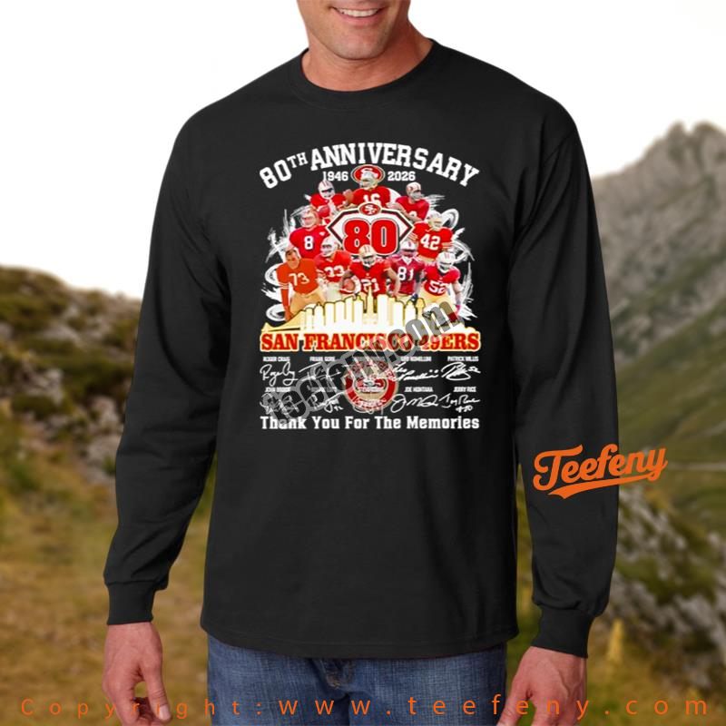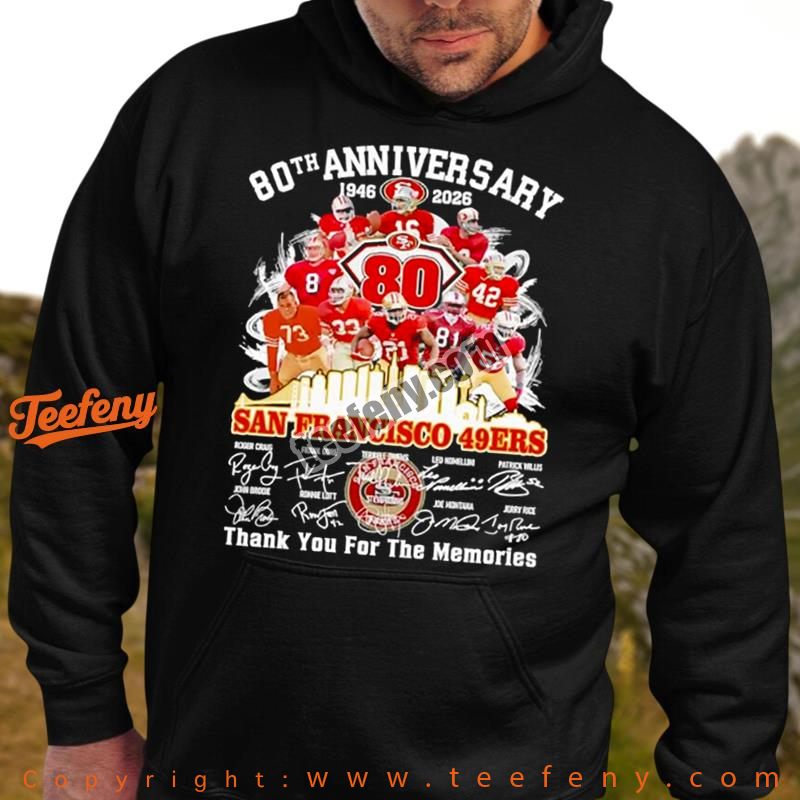 Celebrate your passion with the 49Ers Anniversary Thank For The Memories 1946 2026 80Th Shirt For Fan. This shirt captures the essence of a rich legacy and commemorates a journey filled with unforgettable moments for fans everywhere. It’s not just clothing; it’s a tribute to the timeless memories created over the decades.