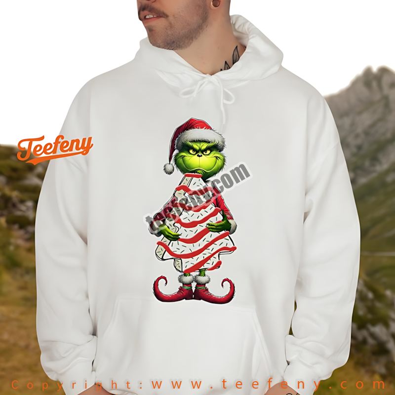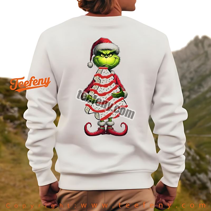 Inspired by the beloved tales of the Grinch, this shirt celebrates the fun and whimsy that the holiday season brings. The magic of holiday treats like Christmas tree cakes has sparked joy in many hearts, and the playful design is sure to resonate with fans of all ages. It’s a charming tribute to festive indulgence and the laughter that comes with it.