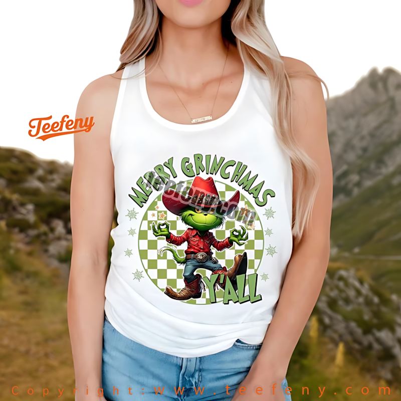 Discover the joy of the season with the Cowboy Grinch Christmas Shirt Merry Grinchmas Yall Western Design. This unique shirt perfectly captures the whimsical spirit of the Grinch, blending holiday cheer with a touch of Western flair. Show off your love for festive fun and cowboy culture with this standout piece.