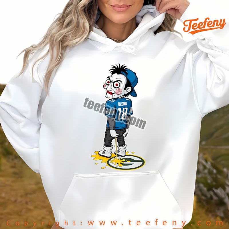 Crafted from 100% premium cotton, this shirt offers both comfort and durability, making it the perfect choice for every thrilling moment—whether you’re trick-or-treating, attending a game, or just hanging out with friends. The vibrant colors and high-definition printing capture the essence of NFL spirit, ensuring you stand out while showing off your Detroit Lions Halloween costume idea. The playful design, featuring a nod to classic horror puppets, adds a quirky twist that’s sure to be a conversation starter.