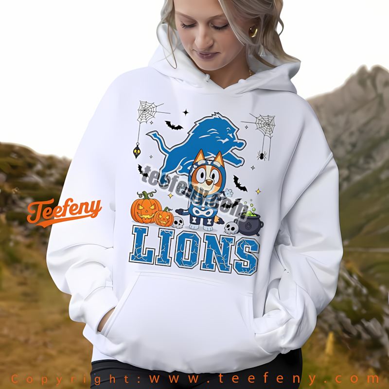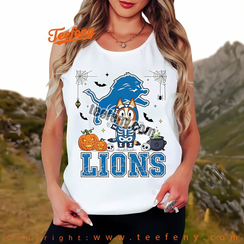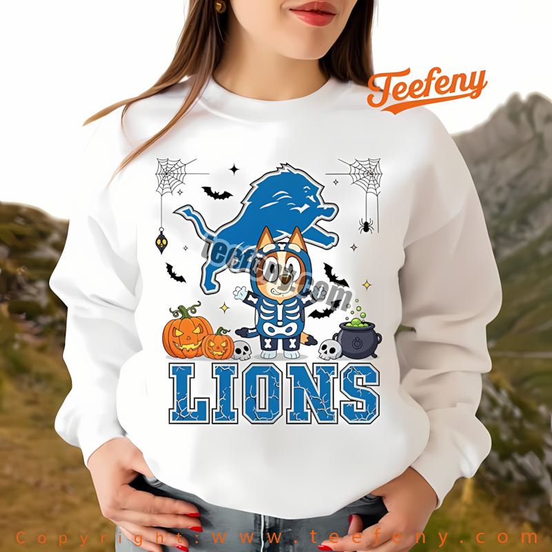 Product information "Detroit Lions Bluey Bingo Halloween Skeleton Pumpkin Shirt Youth"