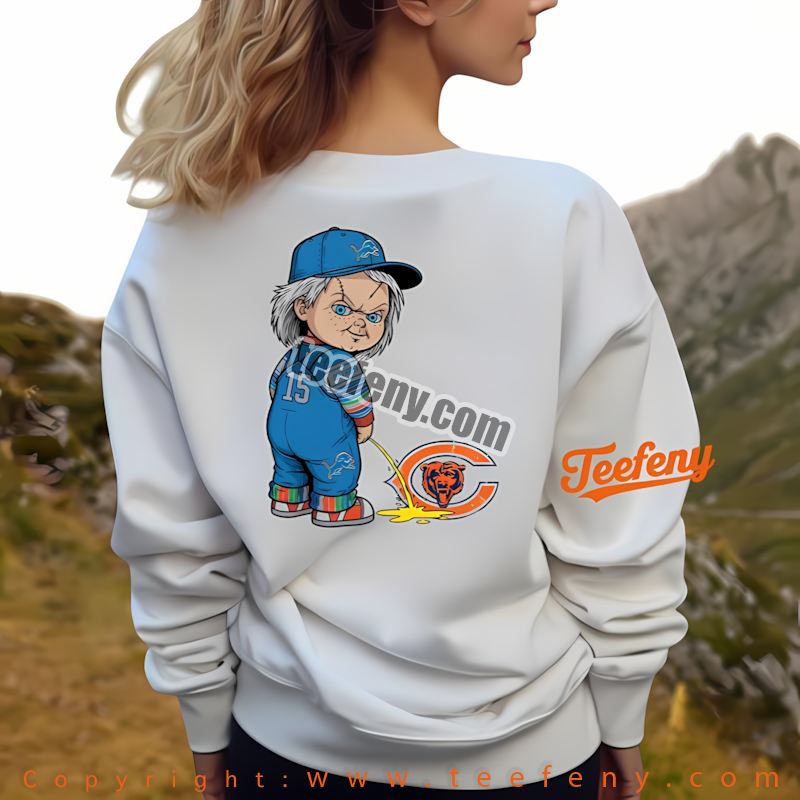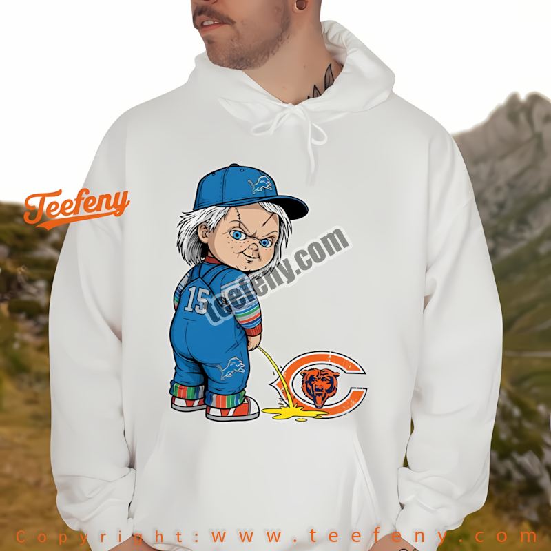 Introducing the perfect addition to your game-day wardrobe, the Detroit Lions Chucky Chicago Bears Rivalry Shirt for Adults. Inspired by the electric energy of the longstanding rivalry between the Detroit Lions and Chicago Bears, this shirt captures the spirit of loyal fans who live and breathe NFL football. Picture the excitement of intense matchups, where every touchdown brings cheers and every tackle fuels pride—this shirt is designed to embody that passion.