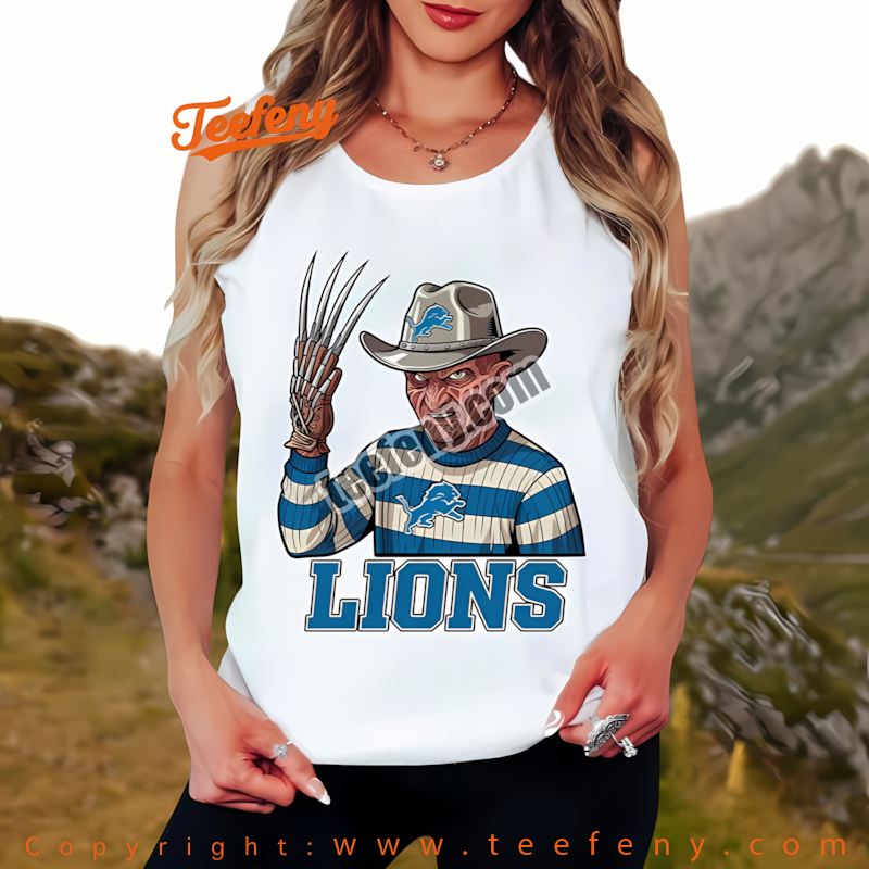 Unleash your fandom with the Detroit Lions Freddy Krueger Halloween Shirt Women, a captivating blend of team spirit and chilling design. This unique apparel creatively combines the classic horror icon with your love for the Lions, making it the perfect outfit for haunted gatherings or game day chills. Picture yourself cheering on your team in this one-of-a-kind shirt that sparks conversations and connects fellow fans through a shared passion for both football and spooky stories.