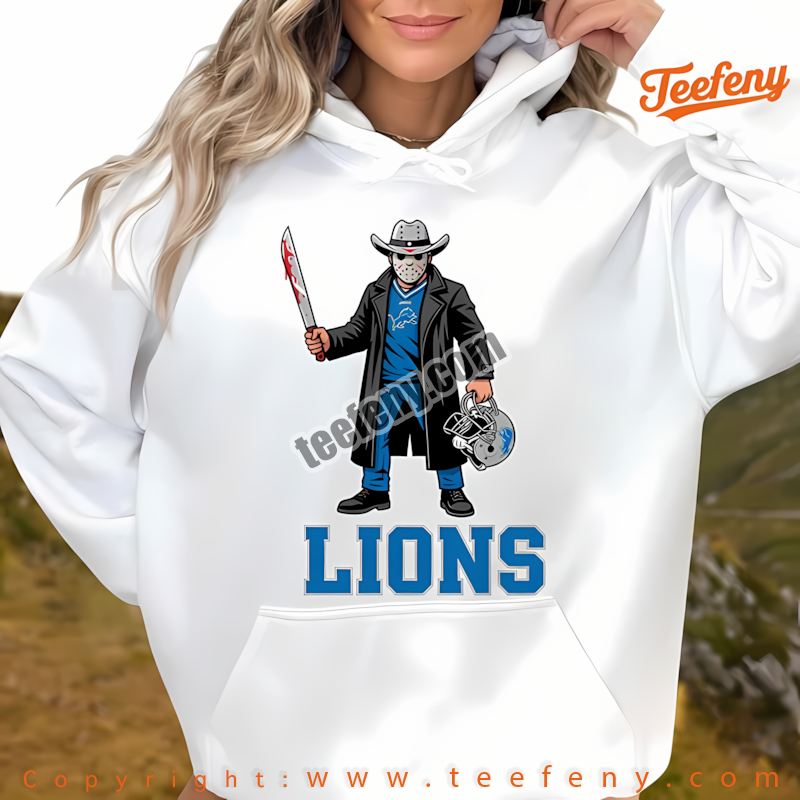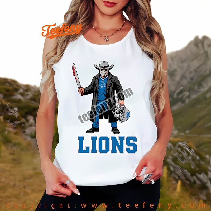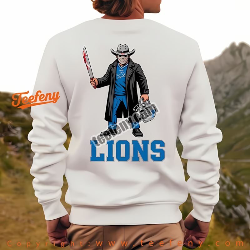 Visually striking, the Jason Voorhees Lions fan shirt features an eye-catching design that turns heads. The vibrant colors and unique graphics not only showcase your team spirit but also add a spooky twist to your Halloween wardrobe. Perfect for pairing with jeans or shorts, this Detroit Lions horror themed shirt elevates any outfit while making you the envy of fellow fans and Halloween enthusiasts alike.