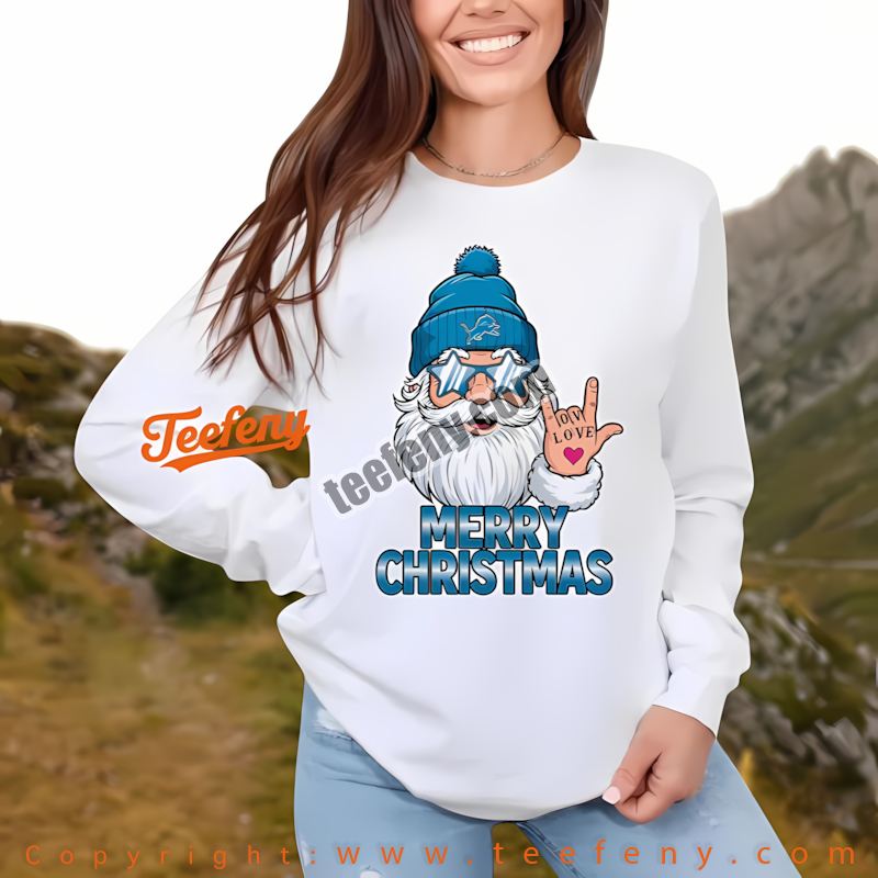 Embrace the Holiday Spirit with Teefeny’s Detroit Lions Rock Santa Merry Christmas Shirt Cotton!