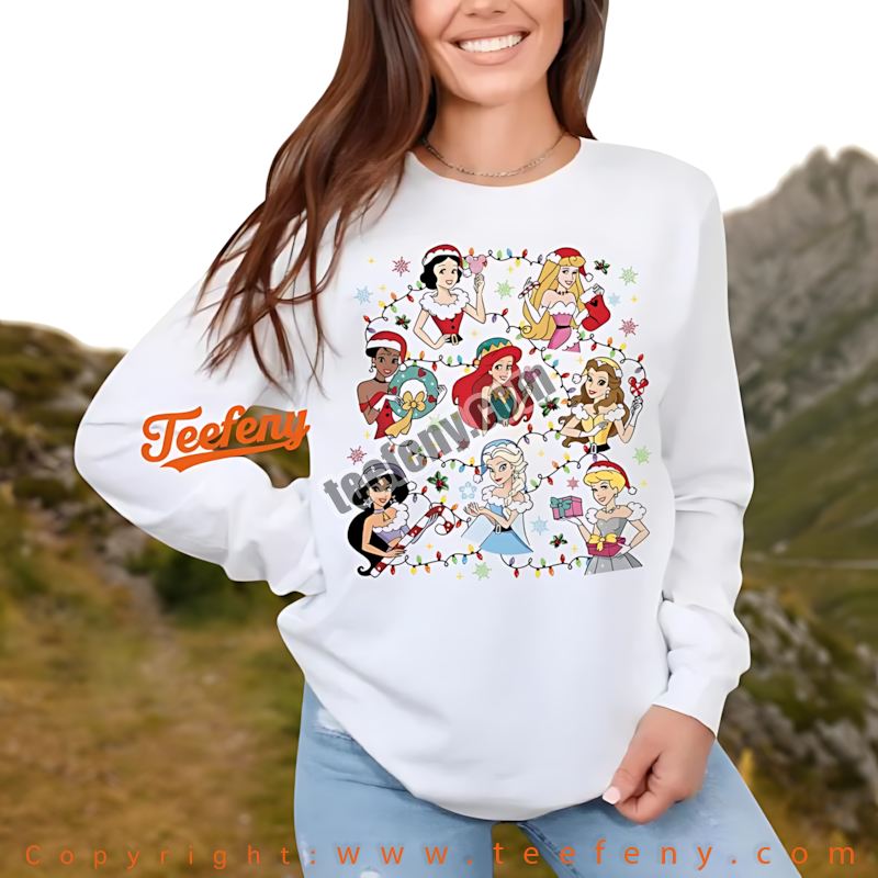 Crafted from soft, breathable cotton, this Disney Princess Christmas shirt ensures all-day comfort and style. Teefeny’s dedication to quality means you’ll enjoy a versatile fit that pairs well with jeans, skirts, or even pajama bottoms for a cozy night in. It’s perfect for both lounging at home and festive outings.