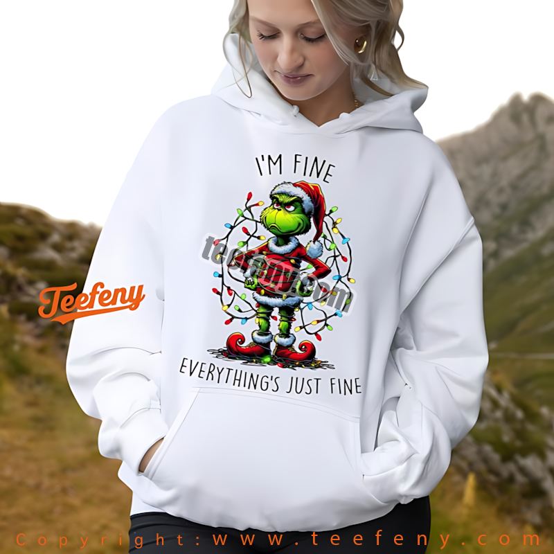 The comfort and versatility of the Grinch Christmas Lights Shirt Funny Im Fine Everythings Fine make it a wardrobe staple. Crafted by Teefeny, it’s not only stylish but also ensures a relaxed fit that feels great all day long. Whether you’re decorating your tree or attending a holiday party, you’ll look and feel fantastic in this festive tee.
