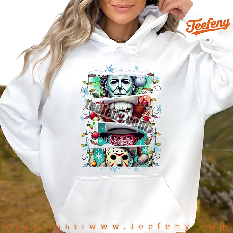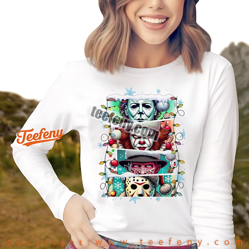 Step into the chilling joys of the season with our Horror Christmas Shirt Michael Pennywise Freddy Jason Light. This uniquely crafted design blends holiday spirit with thrilling horror elements, making it the perfect conversation starter at any festive gathering. Celebrate your love for horror movies while embracing the incredible vibe of Christmas.