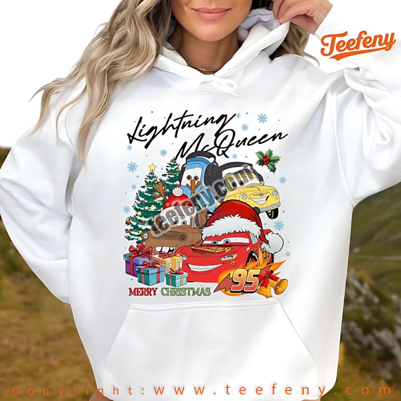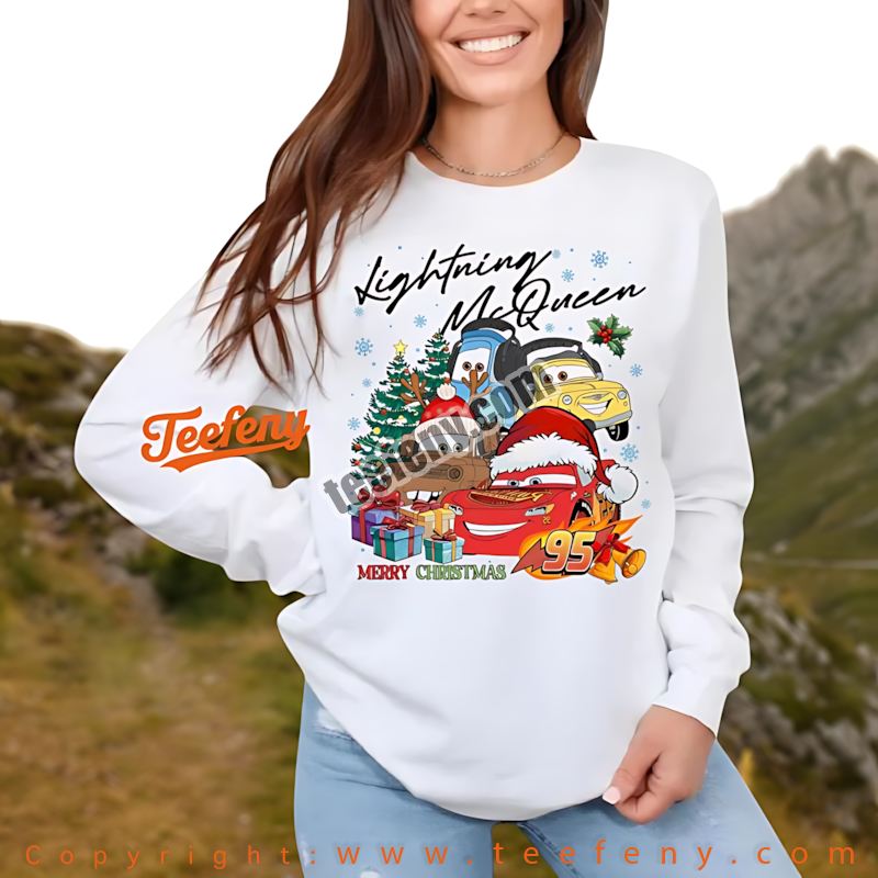 Crafted from soft, breathable cotton, the Lightning Mcqueen Christmas Shirt offers unparalleled comfort and style for casual gatherings or cozy family nights. Teefeny ensures that this shirt not only looks great but feels amazing too. Its versatility makes it suitable for layering or wearing alone, allowing you to mix and match effortlessly with your favorite holiday attire.