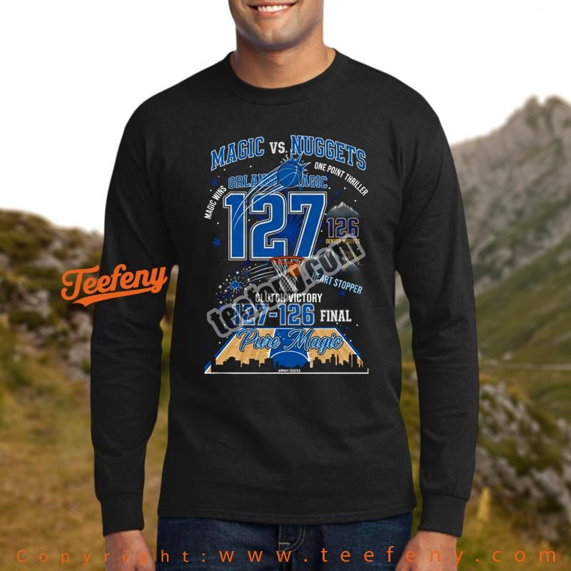 Step onto the court with confidence in the Magic Vs Nuggets 127 126 Shirt Orlando Thriller NBA. This vibrant design reflects the spirit of basketball culture while showcasing your support for your favorite teams. Every stitch is designed for fans who cherish the thrill of the game and understand the meaning behind the match-ups.