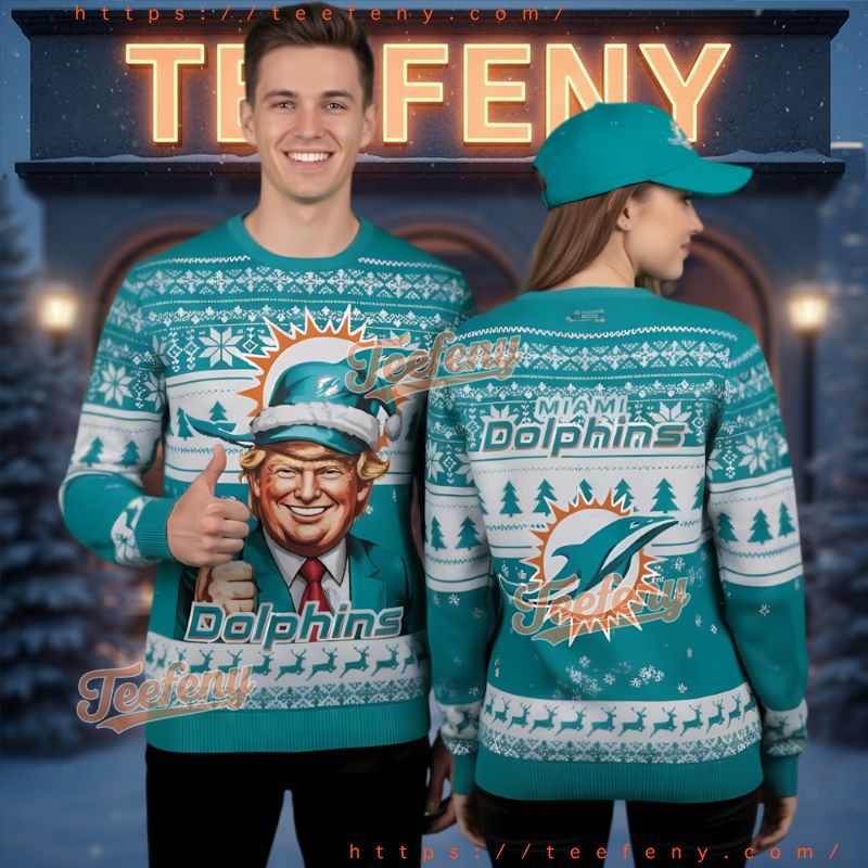 Don’t miss out on this must-have fan collectible that doubles as the perfect gift for any Miami Dolphins enthusiast. Celebrate the holidays with flair and show off your team spirit wearing the Miami Dolphins Donald Trump Ugly Christmas Sweater Fan, an essential piece that every fan should own this season!
