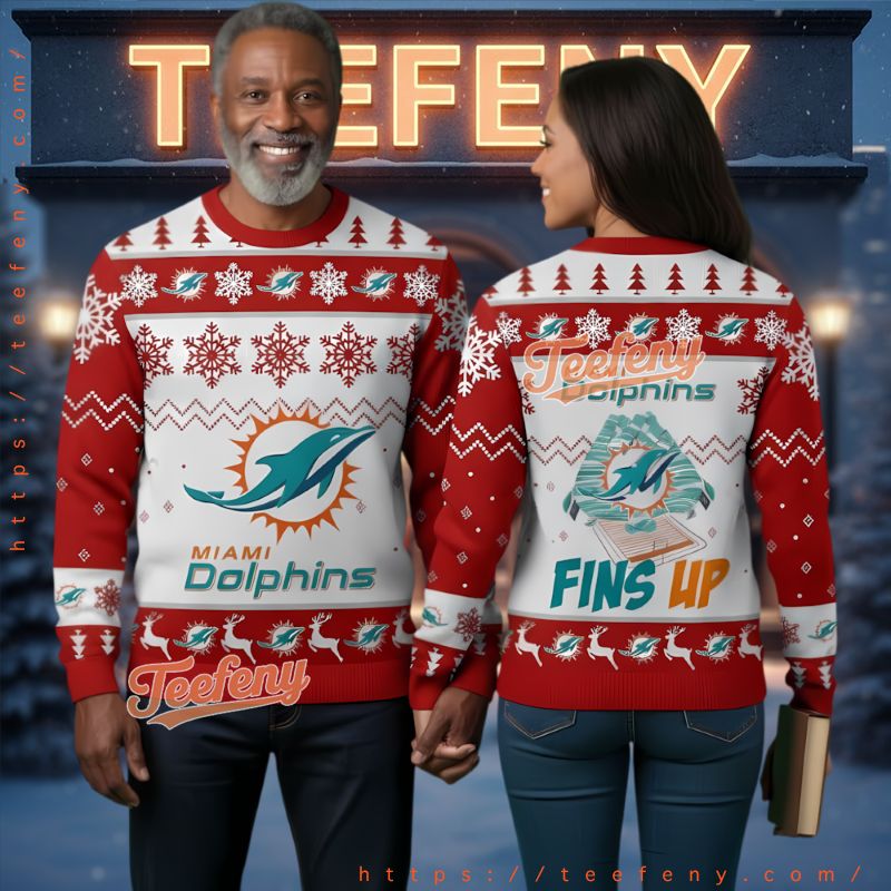 This perfect gift for Dolphins fans brings together holiday cheer and team spirit like never before. Don’t miss out on the chance to own the Miami Dolphins Fins Up Red White Ugly Christmas Sweater, or surprise someone special with this must-have apparel that merges fun and fandom effortlessly!