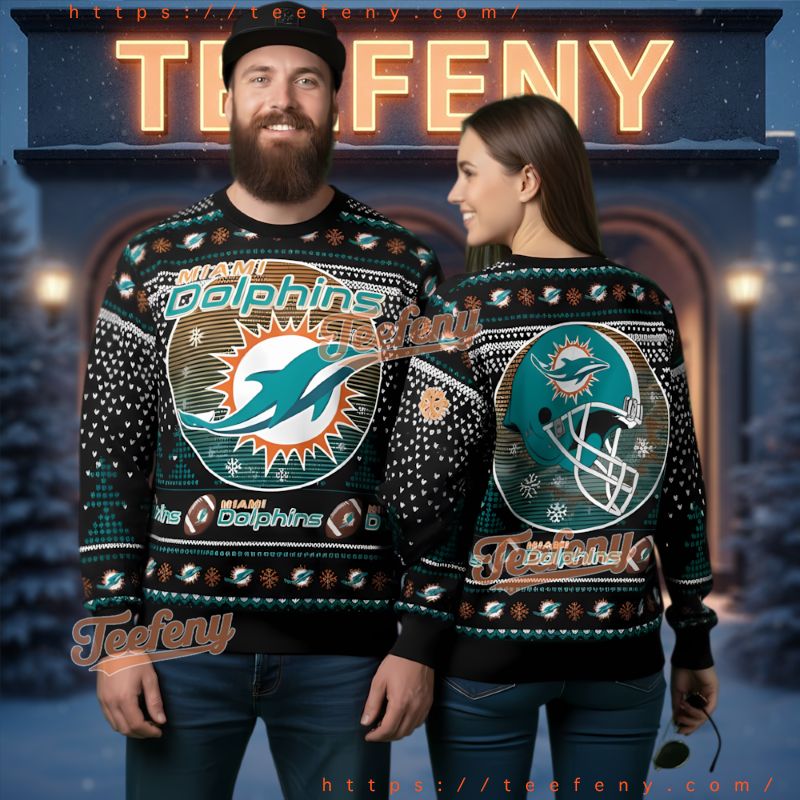 Don’t miss out on this must-have apparel that combines team loyalty and holiday joy. Treat yourself or a fellow fan to the Miami Dolphins Logo Helmet Black Ugly Christmas Sweater as a perfect gift. Show your support and embrace the spirit of the season by adding this remarkable sweater to your collection today!