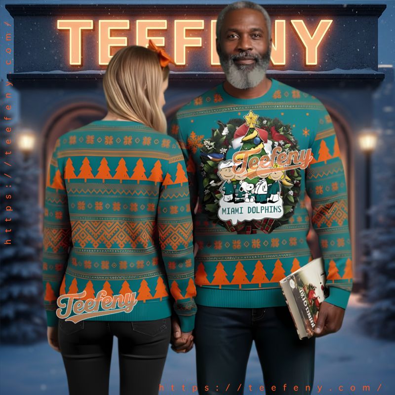 Teefeny has become known for infusing joy into everyday fashion, drawing inspiration from iconic cultural moments. The Miami Dolphins Peanuts Gang Ugly Christmas Sweater Teal embodies this ethos, merging sports enthusiasm with playful nostalgia. Celebrate your love for the Dolphins while reminiscing about the Peanuts gang, making every wear an enjoyable experience.