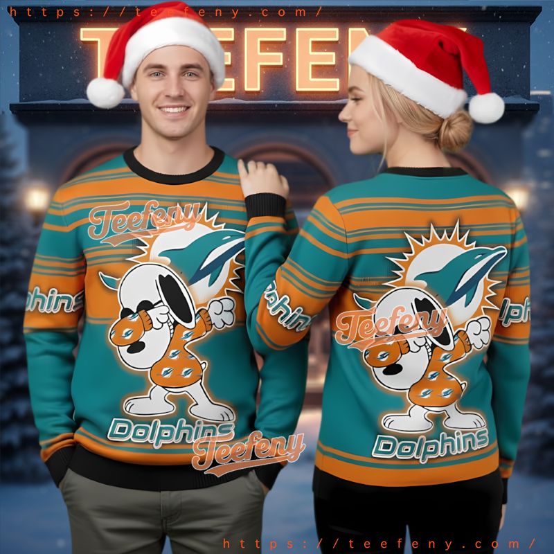 Don’t miss out on this must-have piece for fans! The Miami Dolphins Snoopy Dabbing Ugly Christmas Sweater is not just a cozy garment; it also makes for a perfect gift for any Dolphins devotee or Snoopy admirer. Be festive, be fun, and showcase your team pride with the Miami Dolphins Snoopy Dabbing Ugly Christmas Sweater!