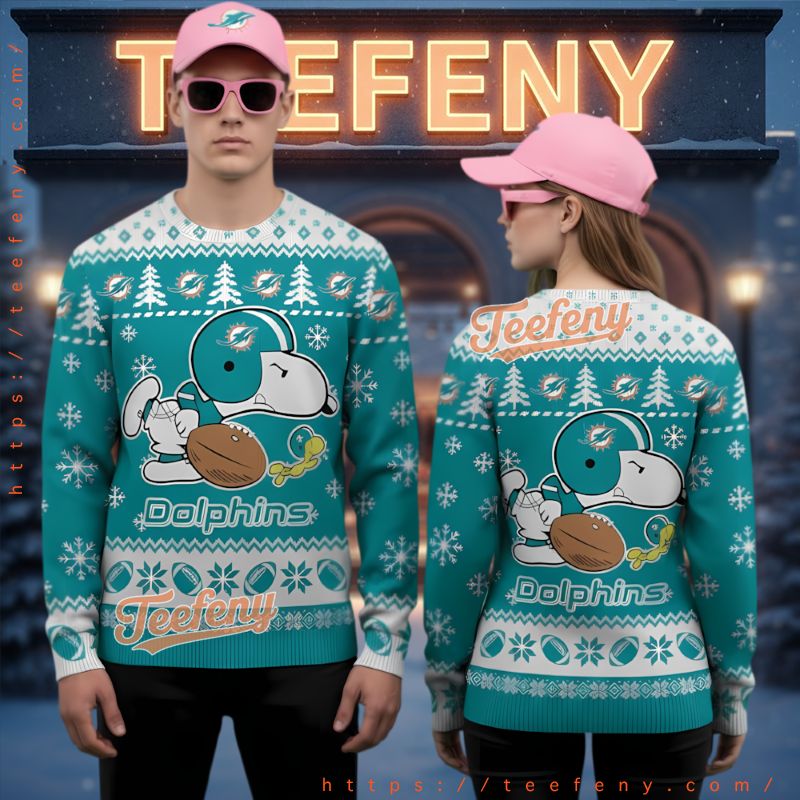 Product information "Miami Dolphins Snoopy Helmet Holiday Ugly Christmas Sweater"