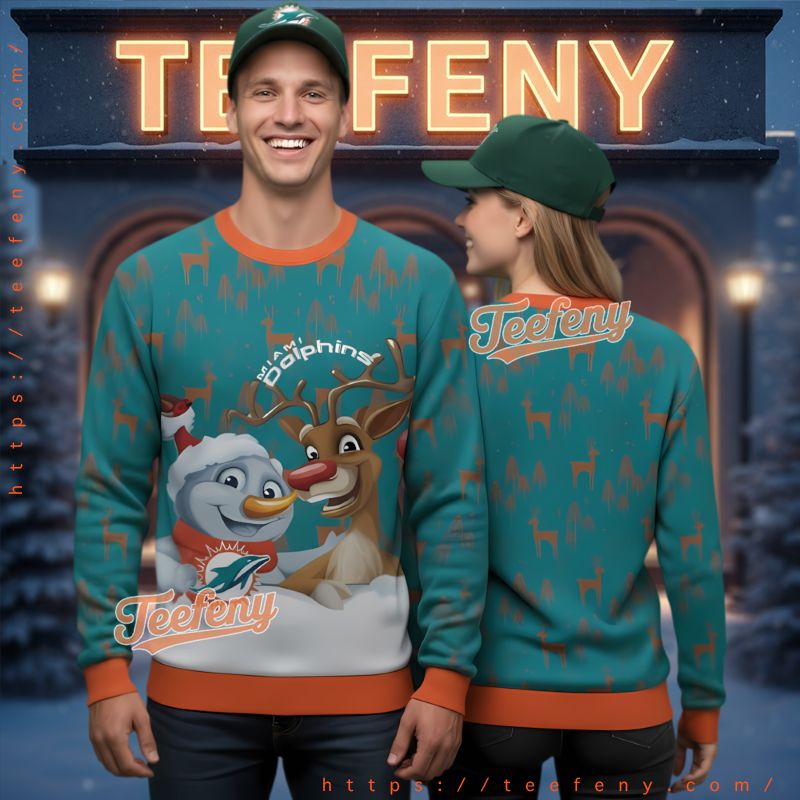 Liven up your holiday wardrobe with this must-have Miami Dolphins Snowman Reindeer Ugly Christmas Sweater. Whether for yourself or as a perfect gift for a fellow fan, this unique apparel combines fun and fandom. Don’t miss the chance to show your team spirit with the Miami Dolphins Snowman Reindeer Ugly Christmas Sweater—get yours today!