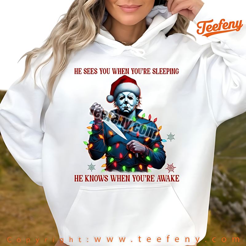 Step into the festive spirit with our Michael Myers Lights Shirt Christmas Horror Sleeping Awake Quote, a perfect blend of holiday cheer and iconic horror. This unique design captures the eerie charm of Michael Myers, making it an essential addition to any fan’s wardrobe. Celebrate the season in style while showcasing your love for classic horror films.