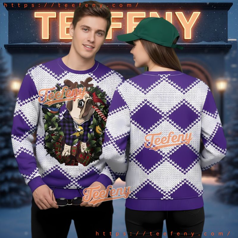 Don’t miss out on the ultimate holiday statement piece that every fan needs! Whether gifting it to a fellow Vikings supporter or keeping it for yourself, this Minnesota Vikings Pug Dog Reindeer Ugly Christmas Sweater Argyle will light up any gathering. Make this stylish and fun ugly Christmas sweater for Vikings fans a part of your holiday traditions!