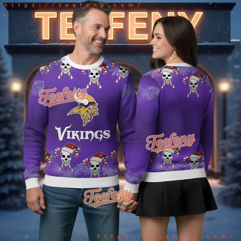 Don’t miss out on the opportunity to bring joy to your wardrobe or delight a fellow fan. This is the perfect gift for anyone who loves the team and the season. Show your team spirit and holiday cheer with the Minnesota Vikings Skull Candy Cane Ugly Christmas Sweater Purple, a must-have for every dedicated supporter.
