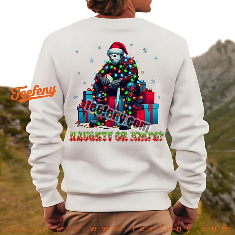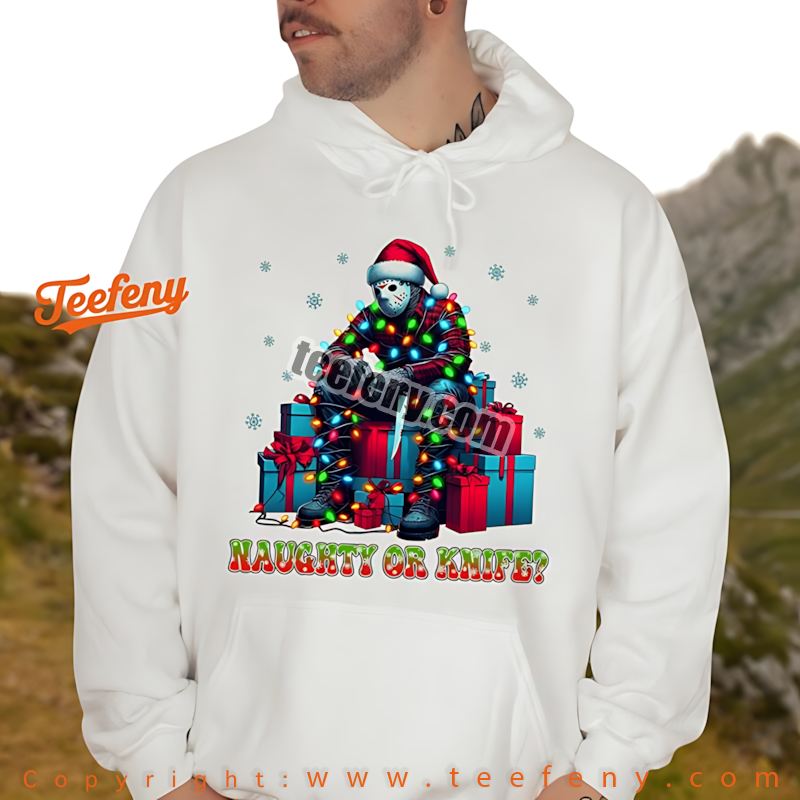 Don’t miss out on this must-have apparel for fans of all ages! The Naughty Or Knife Shirt Jason Voorhees Christmas Lights is not just a shirt; it’s a statement piece that can be the perfect gift for any horror movie lover. Celebrate your passion with this unique shirt and show off your festive spirit by adding the Naughty Or Knife Shirt Jason Voorhees Christmas Lights to your collection today!