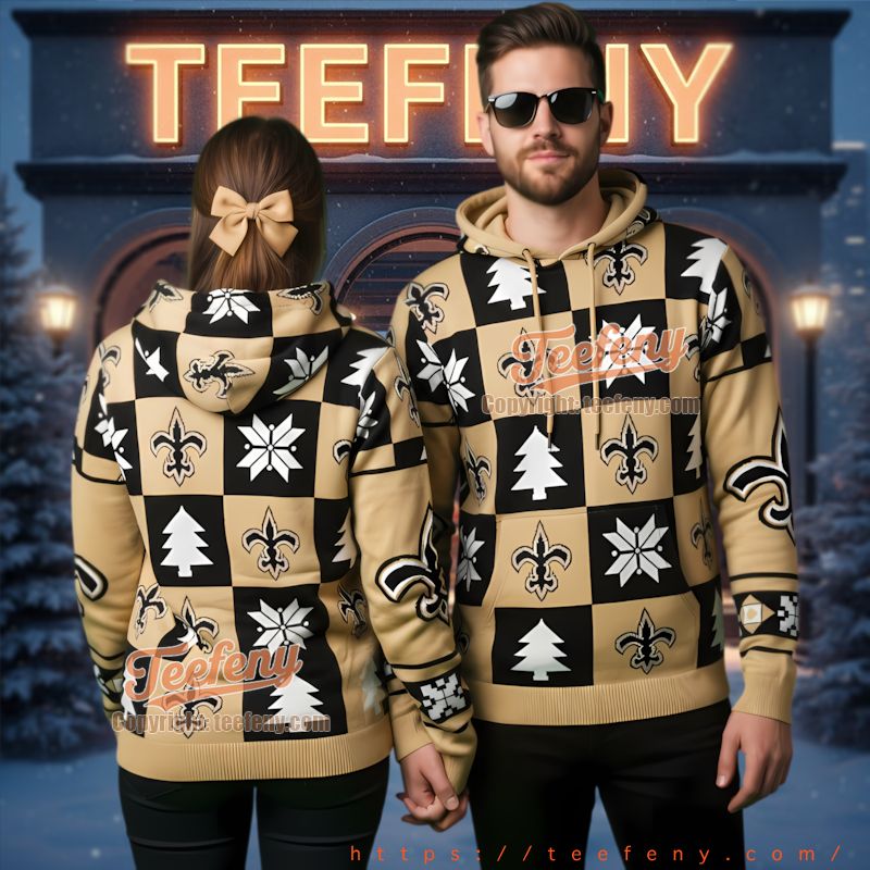Don’t miss out on this must-have apparel for any true Saints supporter. Treat yourself or surprise a loved one with the New Orleans Saints Checkerboard Ugly Christmas 3D Hoodie, a perfect gift for the holidays. Wear this iconic piece to celebrate the season while representing your team with pride.