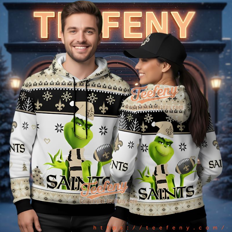 Don’t miss out on the chance to elevate your festive fashion with this unique piece. Perfect as a gift or a personal treat, the New Orleans Saints Funny Grinch Santa Hat Christmas 3D Hoodie is sure to bring laughs and joy to any fan. Celebrate the season and show your Saints pride with this funny Grinch Santa hat hoodie today!