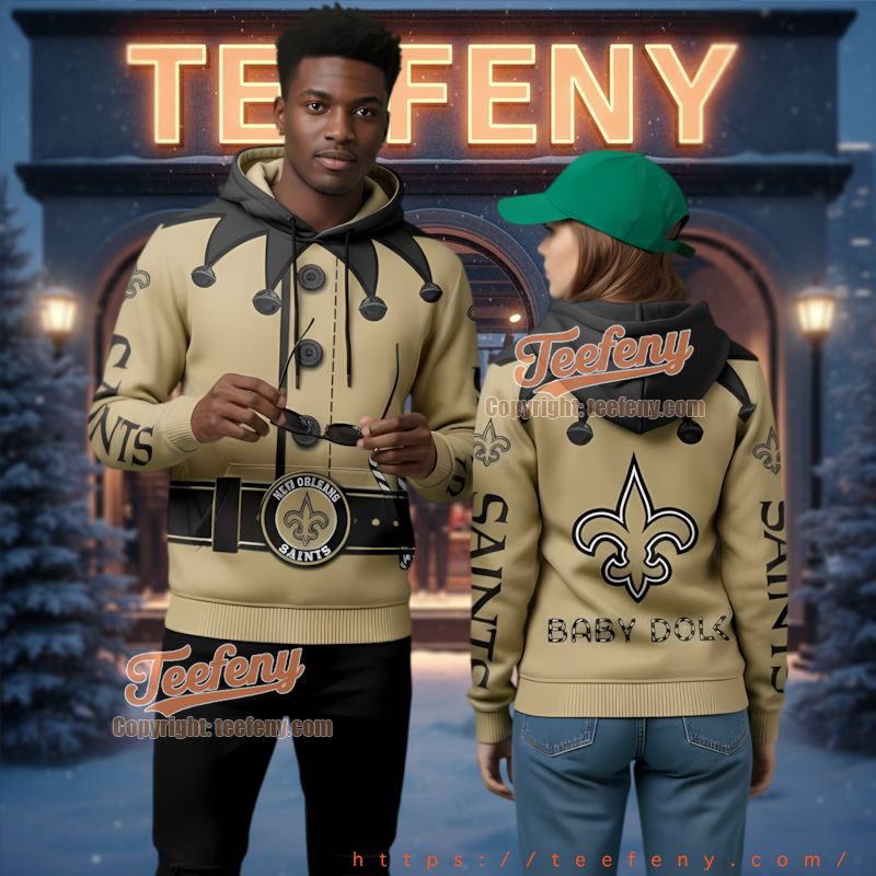 The New Orleans Saints Mardi Gras Jester Theme 3D Hoodie captures the vibrant spirit of Louisiana’s most famous celebration. This unique piece of apparel lets you wear your team pride and festive spirit simultaneously, making a bold statement wherever you go. Show off your love for the team and the party with this eye-catching New Orleans Saints hoodie.