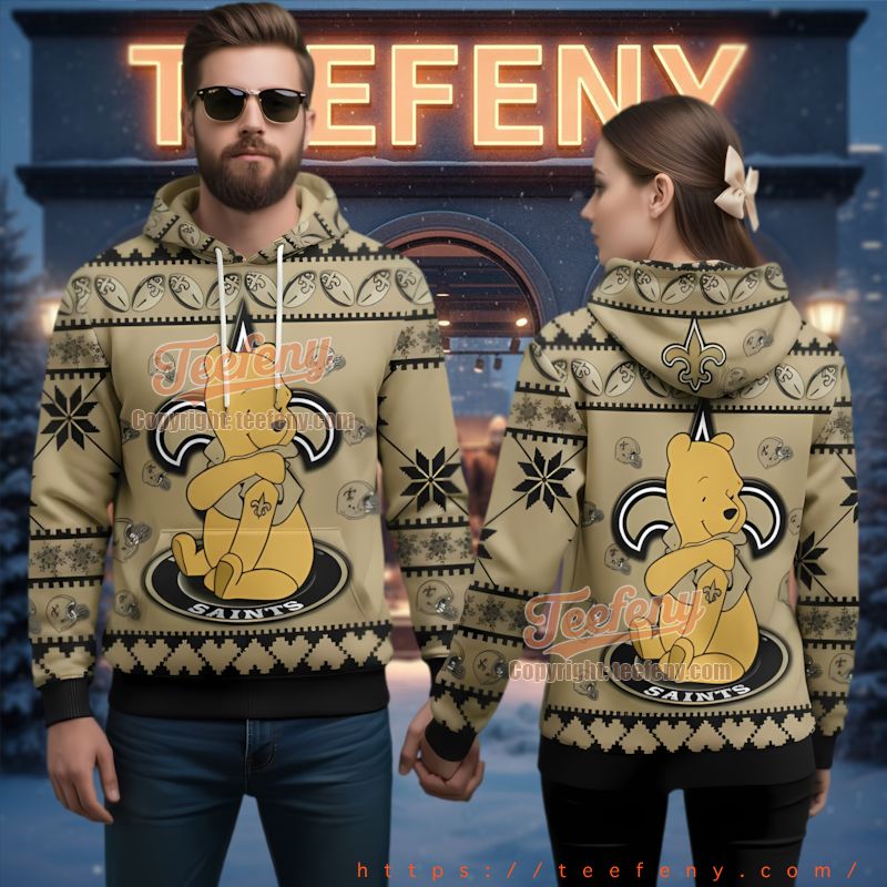 Don’t miss out on this opportunity to own a truly unique piece of fan apparel! This hoodie is an ideal fan collectible or gift for any New Orleans Saints enthusiast who loves Winnie the Pooh, and the holidays. Grab your New Orleans Saints Winnie The Pooh Ugly Christmas 3D Hoodie today and showcase your one-of-a-kind Christmas present to the world!