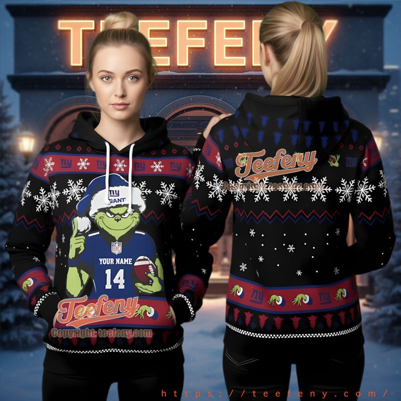 Don’t miss your chance to grab this festive piece, an essential for your holiday wardrobe. Whether you’re shopping for yourself or looking for a perfect gift for a fellow Giants enthusiast, the New York Giants Custom Grinch Wearing Jersey Ugly Christmas 3D Hoodie is an unforgettable choice. Make your season bright with this must-have hoodie!