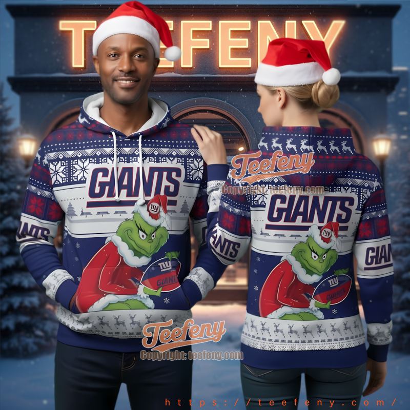 Comfort meets style with the New York Giants Grinch Holding Football Ugly Christmas 3D Hoodie, crafted to provide warmth and coziness. With its high-quality polyester fabric, this hoodie ensures you remain snug while showcasing your allegiance to the Giants. Teefeny has designed this as a versatile piece, making it suitable for relaxing at home or layering during festive outings—a must-have for every fan.