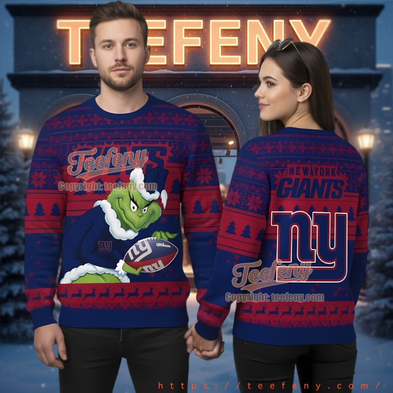 Don’t miss out on this perfect gift option for the avid fan in your life. Celebrate the season and showcase your allegiance with the New York Giants Grinch Mascot Football Christmas Sweater. Embrace the cheer of the holidays with this incredible football Christmas sweater and show off your team colors in true festive style!