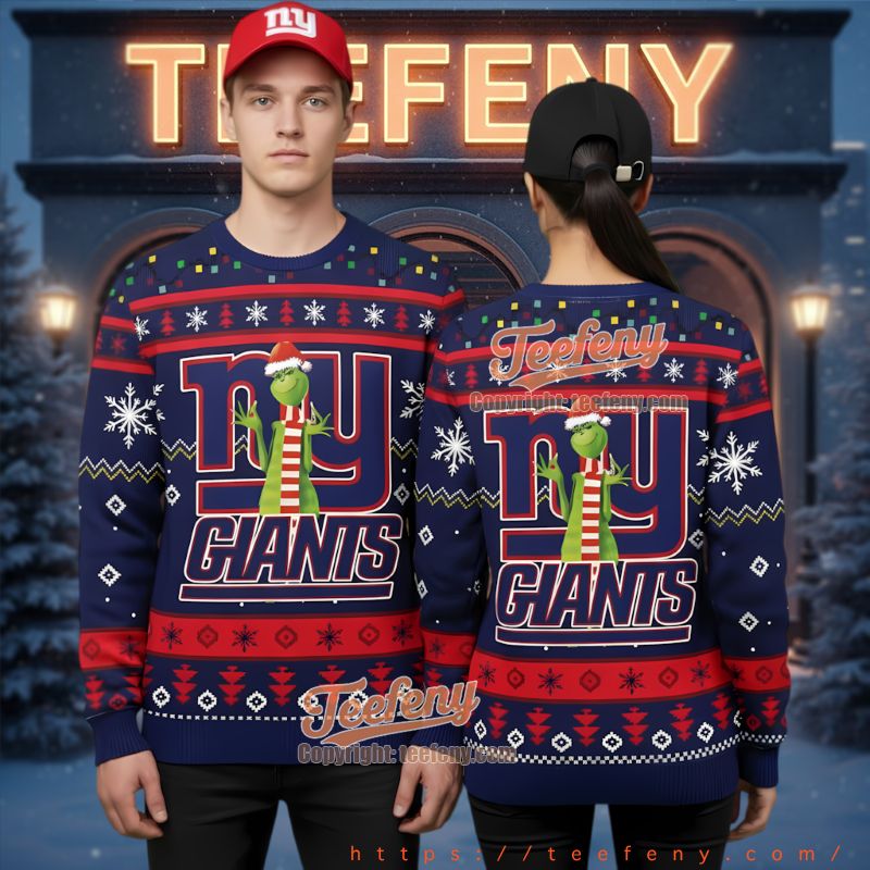 The New York Giants Grinch Santa Hat Ugly Christmas Sweater is the ultimate way to showcase your team spirit with a festive twist. This unique sweater blends the iconic Grinch character with the holiday cheer of Santa, all while proudly displaying your New York Giants pride. It’s the perfect ugly Christmas sweater to make a statement at any holiday gathering, whether it’s with family, friends, or fellow football fans.