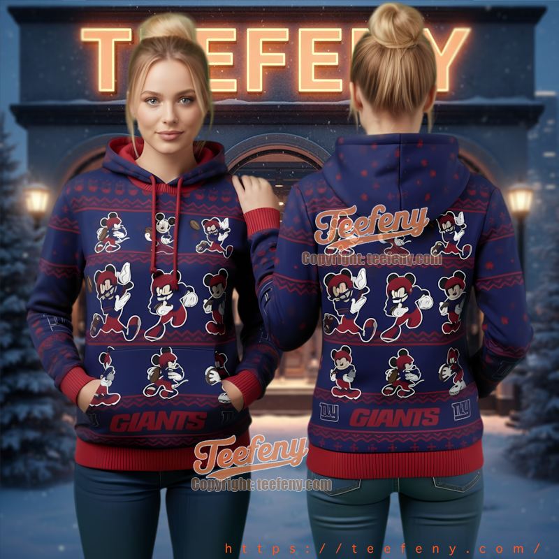 Celebrate the holiday season with the vibrant New York Giants Mickey Mouse Pattern Ugly Christmas 3D Hoodie. This delightful hoodie combines your love for the Giants and the charm of Mickey Mouse, making it a standout piece for festive gatherings. The design captures the spirit of joy, fun, and fandom, making it the perfect centerpiece of your holiday wardrobe.