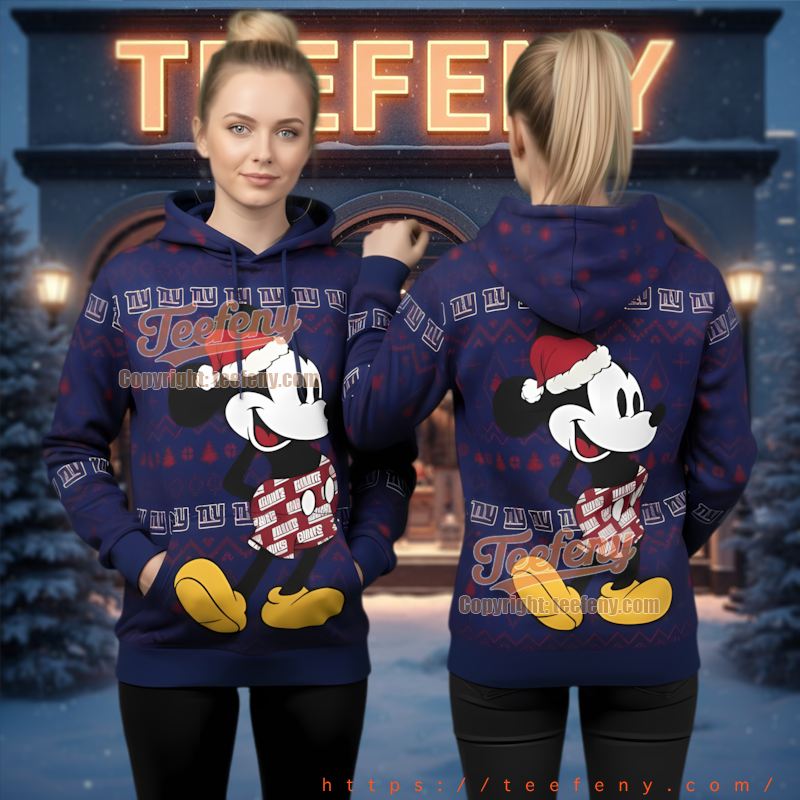 Comfort and versatility are at the forefront of this amazing hoodie. Made from high-quality polyester, the New York Giants Mickey Mouse Santa Hat Ugly Christmas 3D Hoodie ensures you stay comfortable while looking stylish. Teefeny has crafted this hoodie for every fan who wants to celebrate in comfort without sacrificing style.