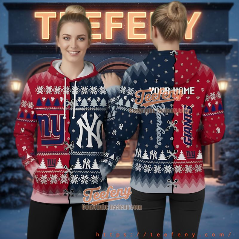 Product information "New York Giants Yankees Split Ugly Christmas 3D Hoodie Custom Name"