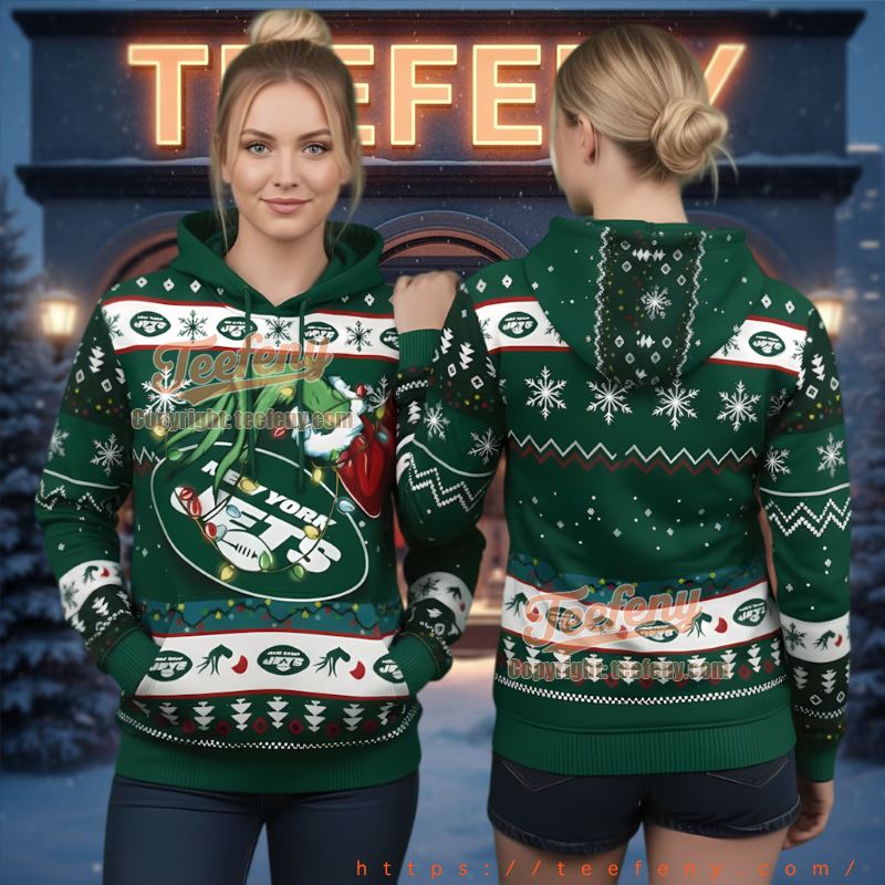 Make a statement this holiday season with the New York Jets Grinch Stealing Logo Ugly Christmas 3D Hoodie. It’s an ideal fan collectible that embodies the joy of both the game and the festive season. Don’t miss out on this must-have apparel; grab your New York Jets Grinch Stealing Logo Ugly Christmas 3D Hoodie today!