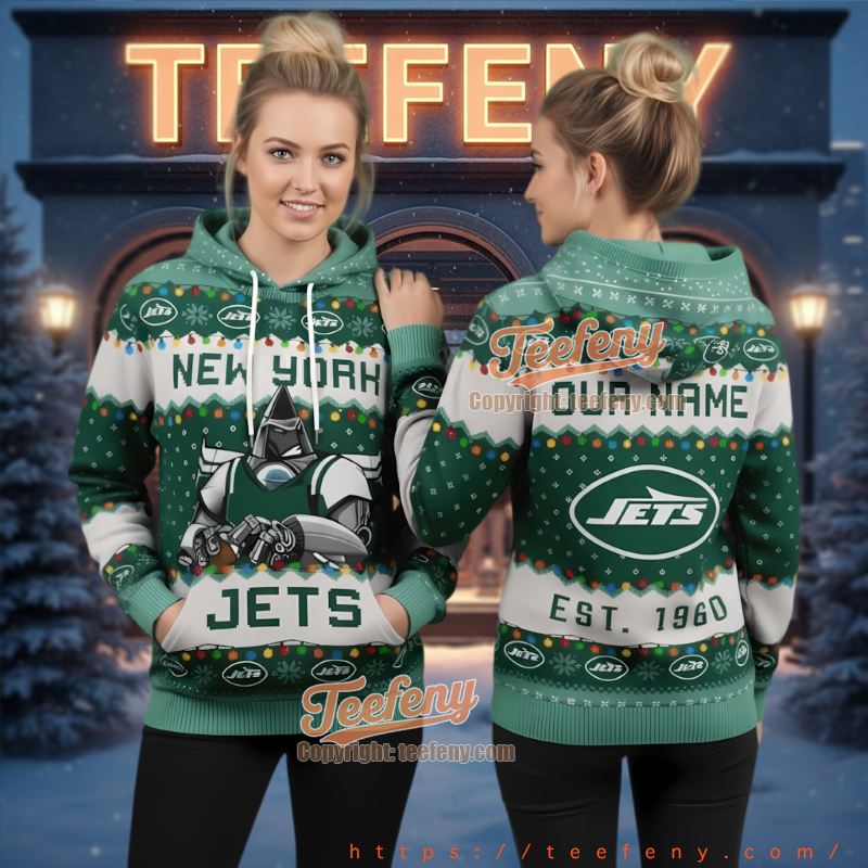 Product information "New York Jets Mascot Ugly Christmas 3D Hoodie Custom Name"