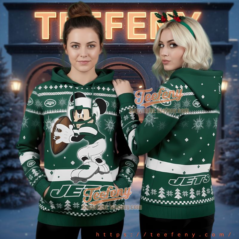 Embrace the holiday spirit with the New York Jets Mickey Mouse Football Ugly Christmas 3D Hoodie Disney. This festive piece combines your love for football and the whimsical charm of Mickey Mouse, making it an essential addition to your winter wardrobe. Perfect for game days or cozy nights in, this hoodie seamlessly blends fun and fashion, ensuring you stand out in any crowd.