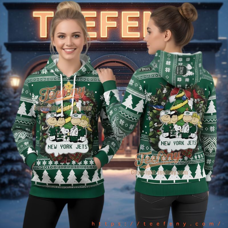 The origins of this hoodie are deeply rooted in both sports and pop culture. Fans have long embraced the quirky side of fandom, and the combination of Peanuts and NFL loyalty represents a harmonious blend of childhood nostalgia and adult passion. This funny Christmas hoodie not only showcases your love for the Jets but also pays homage to timeless characters like Snoopy, creating a bridge between generations.