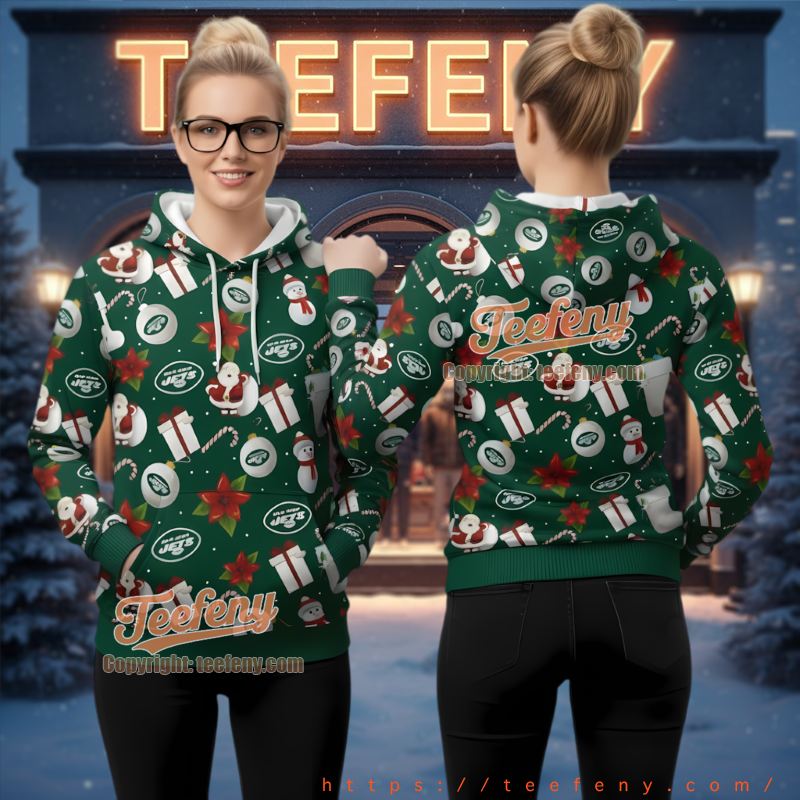 Product information "New York Jets Santa Snowman Ugly Christmas 3D Hoodie Holiday Pattern"
