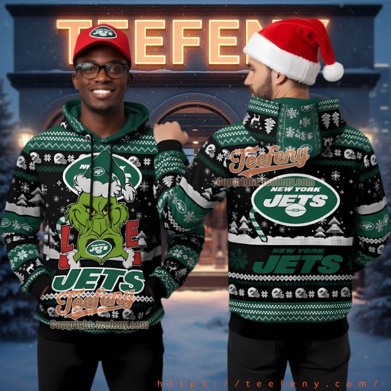 Don’t miss out on the chance to grab this essential piece of fan gear. The perfect gift for the die-hard Jets supporter in your life, this hoodie captures the essence of the season. Elevate your game-day wardrobe with the New York Jets The Grinch Football Ugly Christmas 3D Hoodie Fan Gear and show off your love for the game in style!