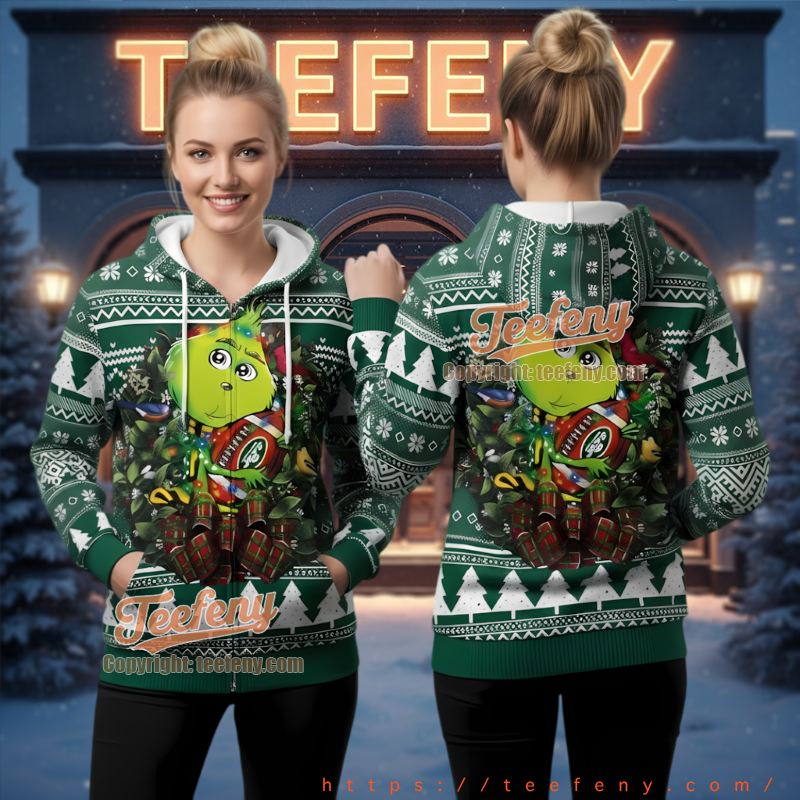 Don’t miss out on the chance to snag this must-have apparel for any true fan. The New York Jets The Grinch Ugly Christmas 3D Hoodie Zip Up Fan Gear makes for a perfect gift, ideal for anyone who loves both football and the holiday season. Get yours today and bring festive cheer to your game day wardrobe!