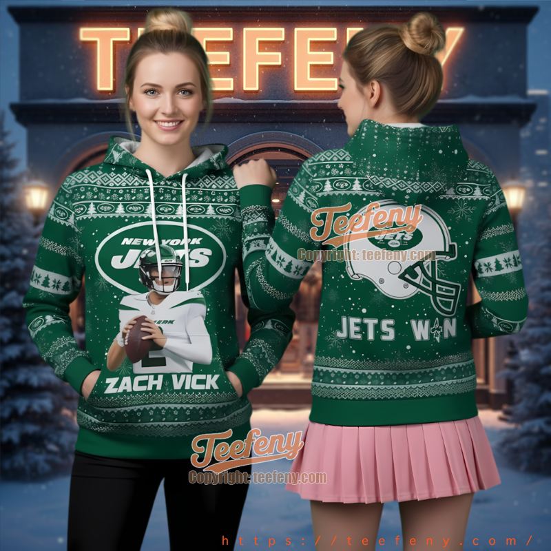 Make your holiday season unforgettable with the perfect gift for any New York Jets enthusiast. Don’t miss out on this must-have apparel that combines fun, warmth, and team pride. Grab the New York Jets Zach Wilson Ugly Christmas 3D Hoodie Jets Fan Gift today and wear your fandom proudly!