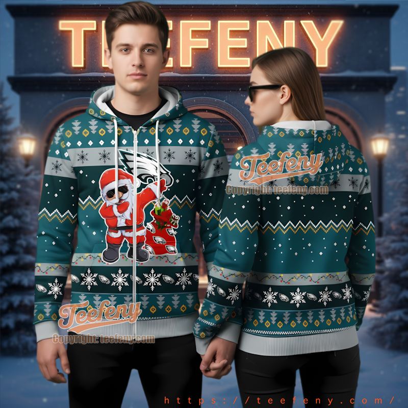 Don’t miss out on this incredible chance to own the Philadelphia Eagles Dabbing Santa 3D Ugly Christmas Hoodie Funny. Whether for yourself or as a perfect gift for that special fan in your life, this hoodie is sure to become a cherished favorite. Celebrate your team in style this holiday season!