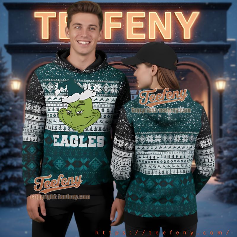 Inspired by the beloved Christmas classic, this hoodie captures the essence of fan dedication. With every stitch, it tells a story of camaraderie and holiday festivities, making it an essential part of your game-day wardrobe. Sporting this design will surely evoke conversations, laughter, and shared memories, connecting fellow fans through a shared love of the Eagles and the Grinch alike.