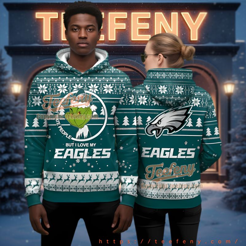 Product information "Philadelphia Eagles Grinch I Hate People 3D Ugly Christmas Hoodie"