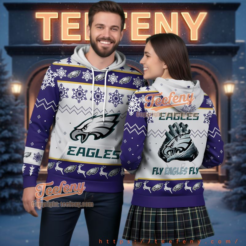 Don’t miss out on the opportunity to elevate your holiday wardrobe with this stunning piece. The Philadelphia Eagles Purple White Ugly Christmas 3D Hoodie is the perfect gift for any Eagles enthusiast or a delightful treat for yourself. Show your spirit and spread holiday cheer with the Philadelphia Eagles Purple White Ugly Christmas 3D Hoodie today!