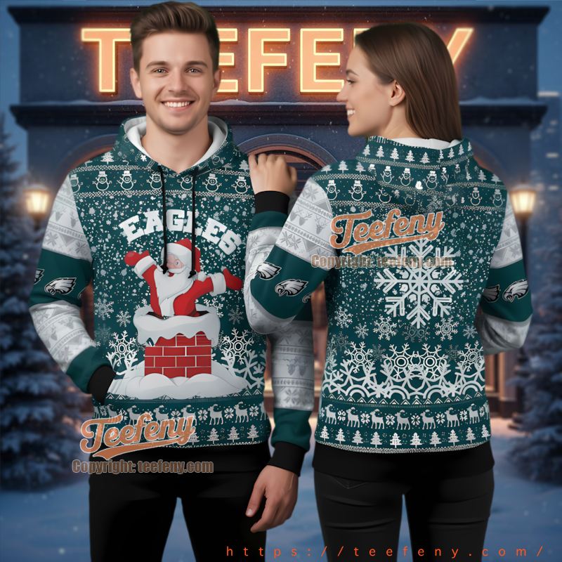 Celebrate the spirit of the holidays with the Philadelphia Eagles Santa Chimney 3D Ugly Christmas Hoodie Holiday, a delightful addition to any festive wardrobe. This unique design brings together the joy of Christmas and the pride of being an Eagles fan, creating a fun statement piece. It’s not just a hoodie; it’s a way to show your love for your team in a cheerful and playful manner.