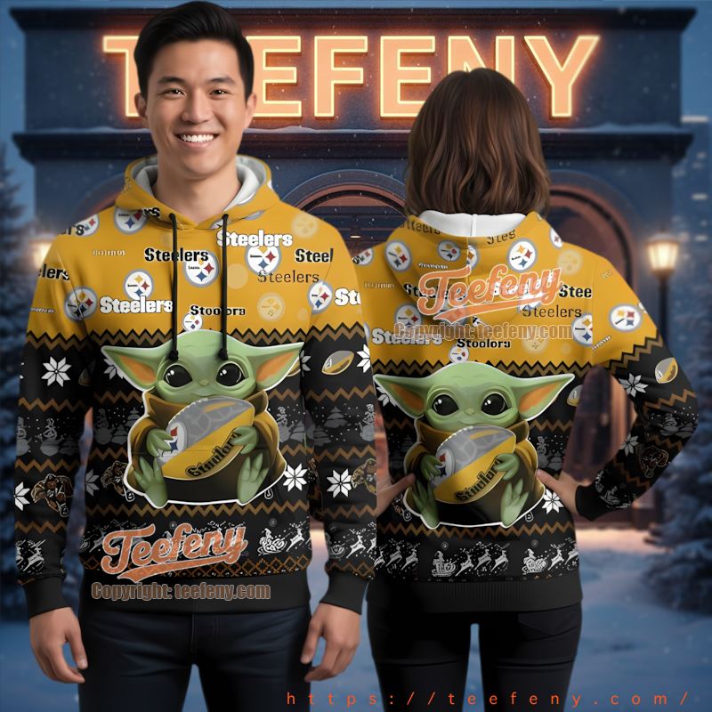 Don’t miss out on this must-have apparel for all fans and collectors alike. Whether you’re gifting it to a friend or treating yourself, the unique Baby Yoda Christmas hoodie is the ultimate way to express your fandom. Grab your Pittsburgh Steelers Baby Yoda Ugly Christmas 3D Hoodie Star Wars Fan today and spread the holiday joy while showing off your team pride!